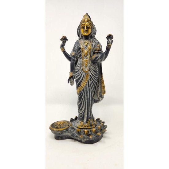Laxmi Standing Ash/Gold finish 10" with coin basket at base, brass.